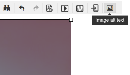 Once you've dragged you image into your content, select the image, then click the 'Image alt text' button.